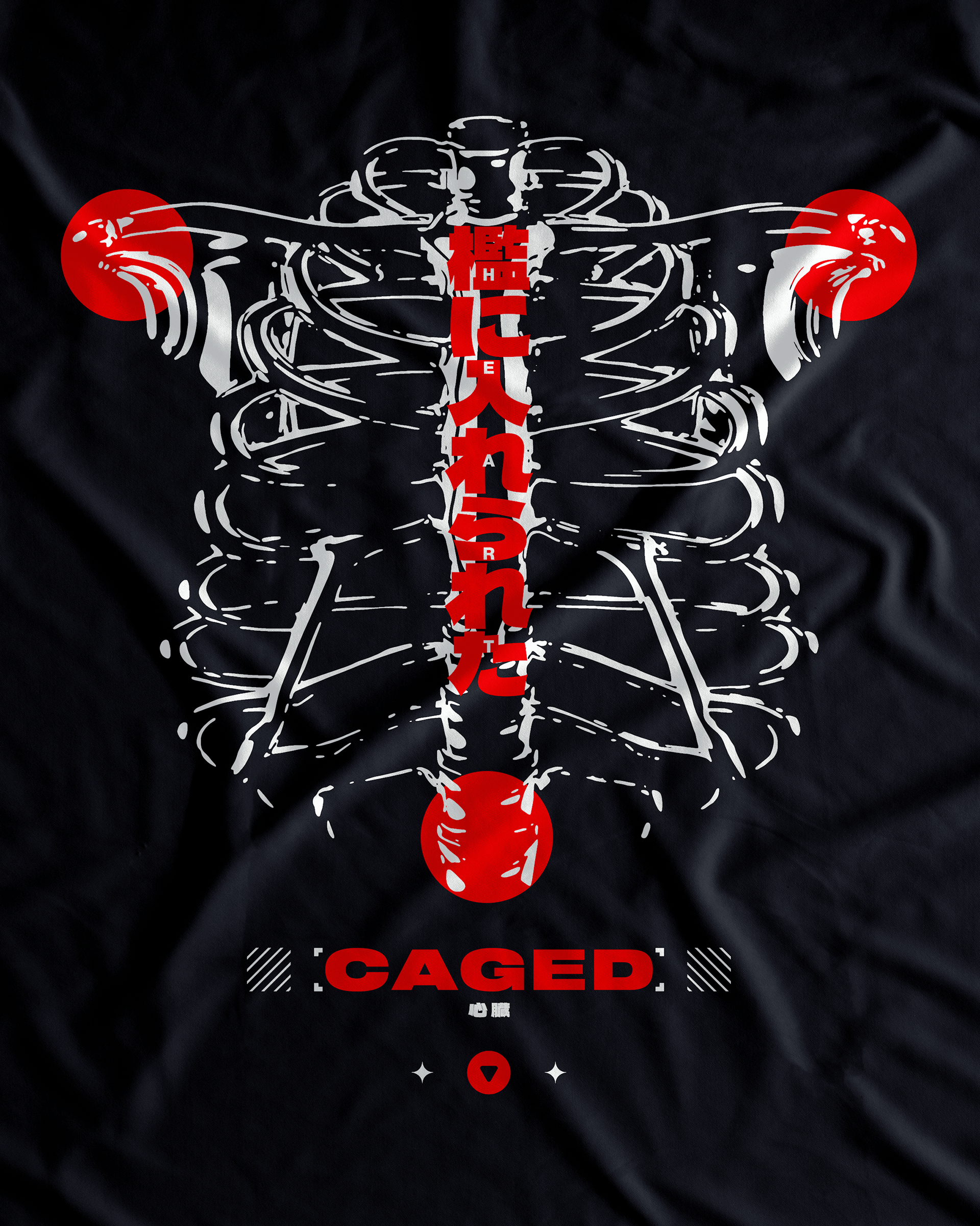 This design is a y2k style accented color scheme made using an image of a ribcage. The ribcage image is of a metallic ribcage, and the reflections give it that y2k style. The colors give it that pop in the black and white palette.
