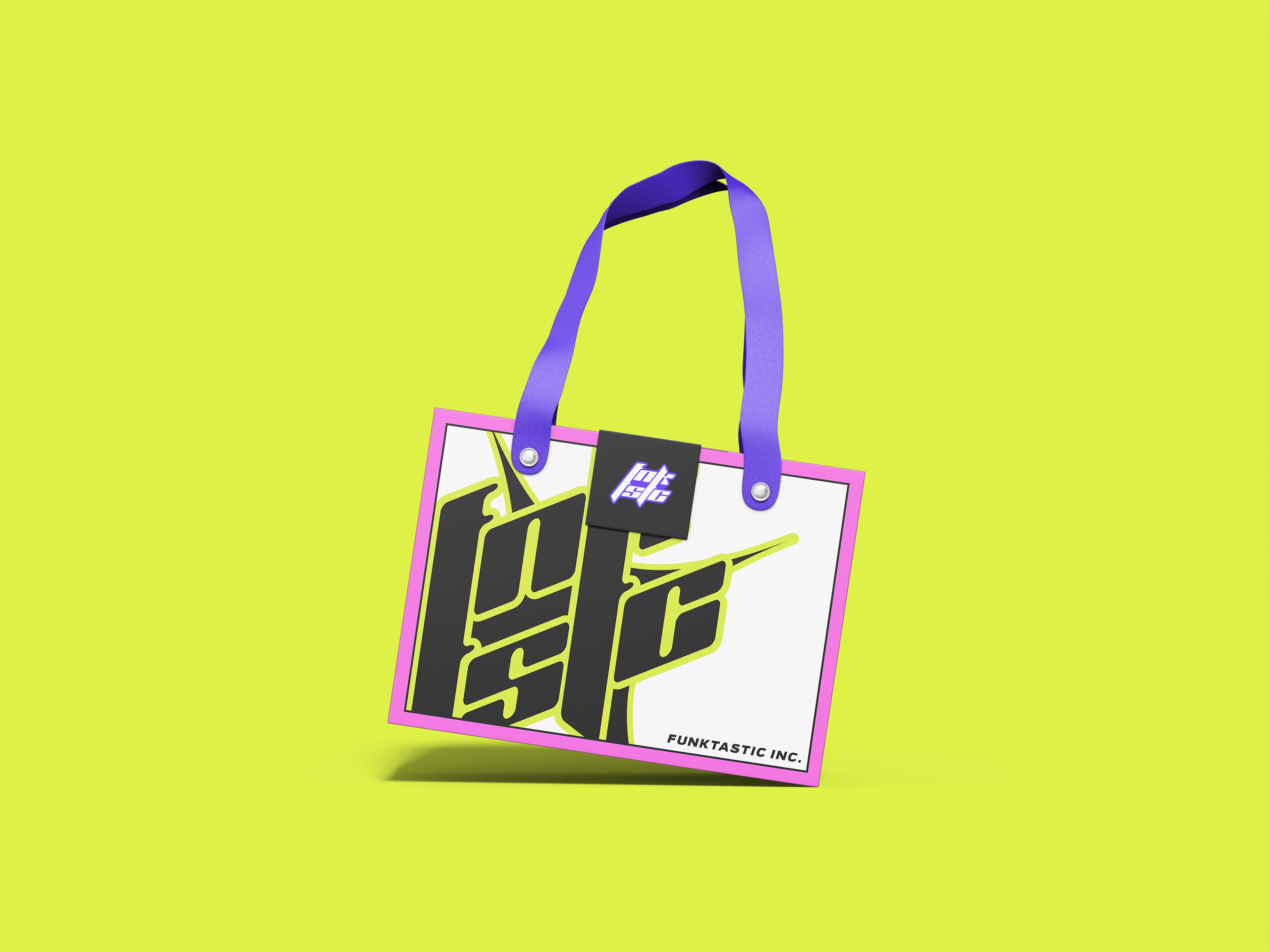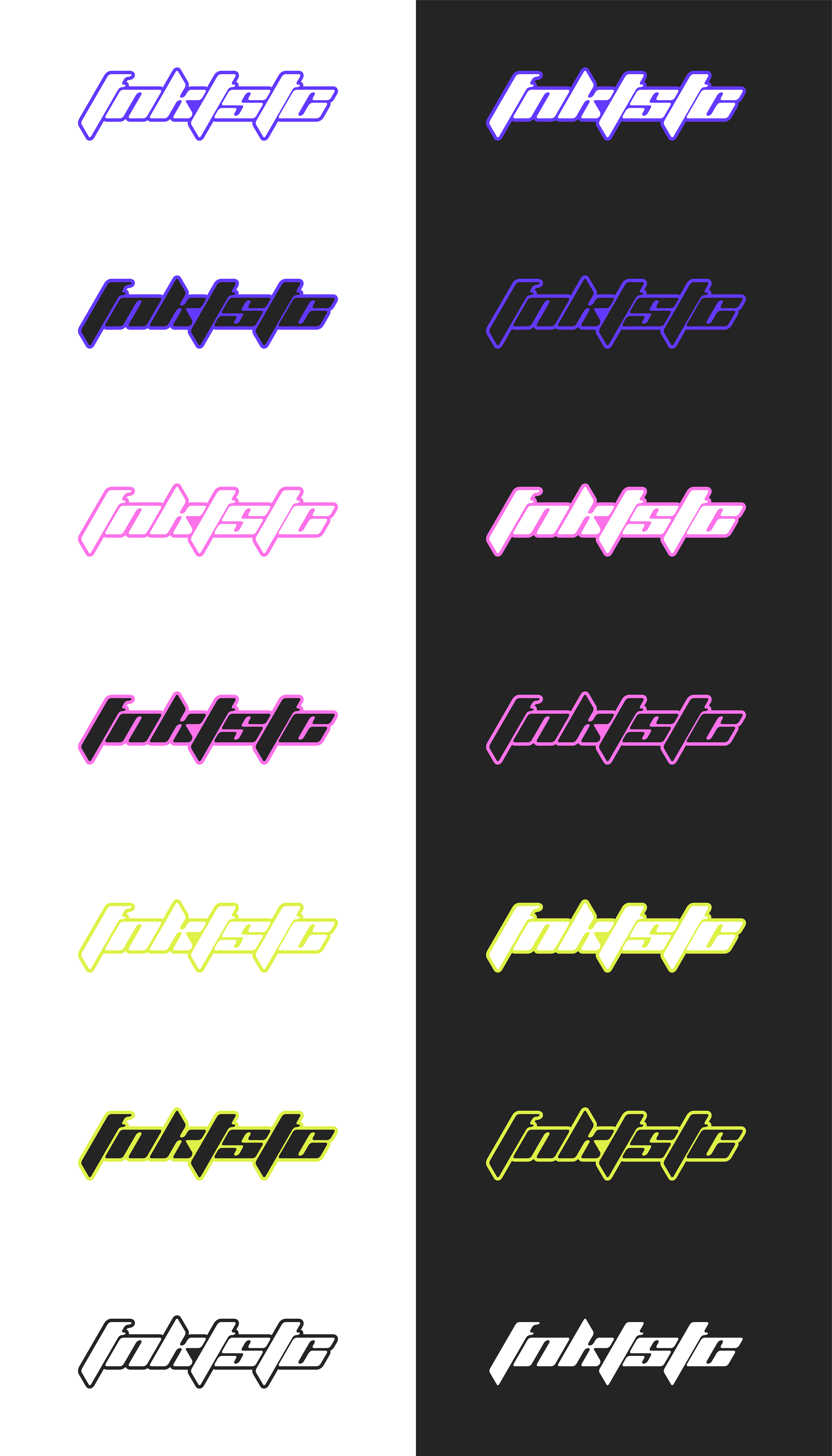 Logo Design Concept for a streetwear clothing brand named funktastic (funky + fantastic), a very loud color scheme to stay in the funky look, accompanied with a trendy & speedy typeface.