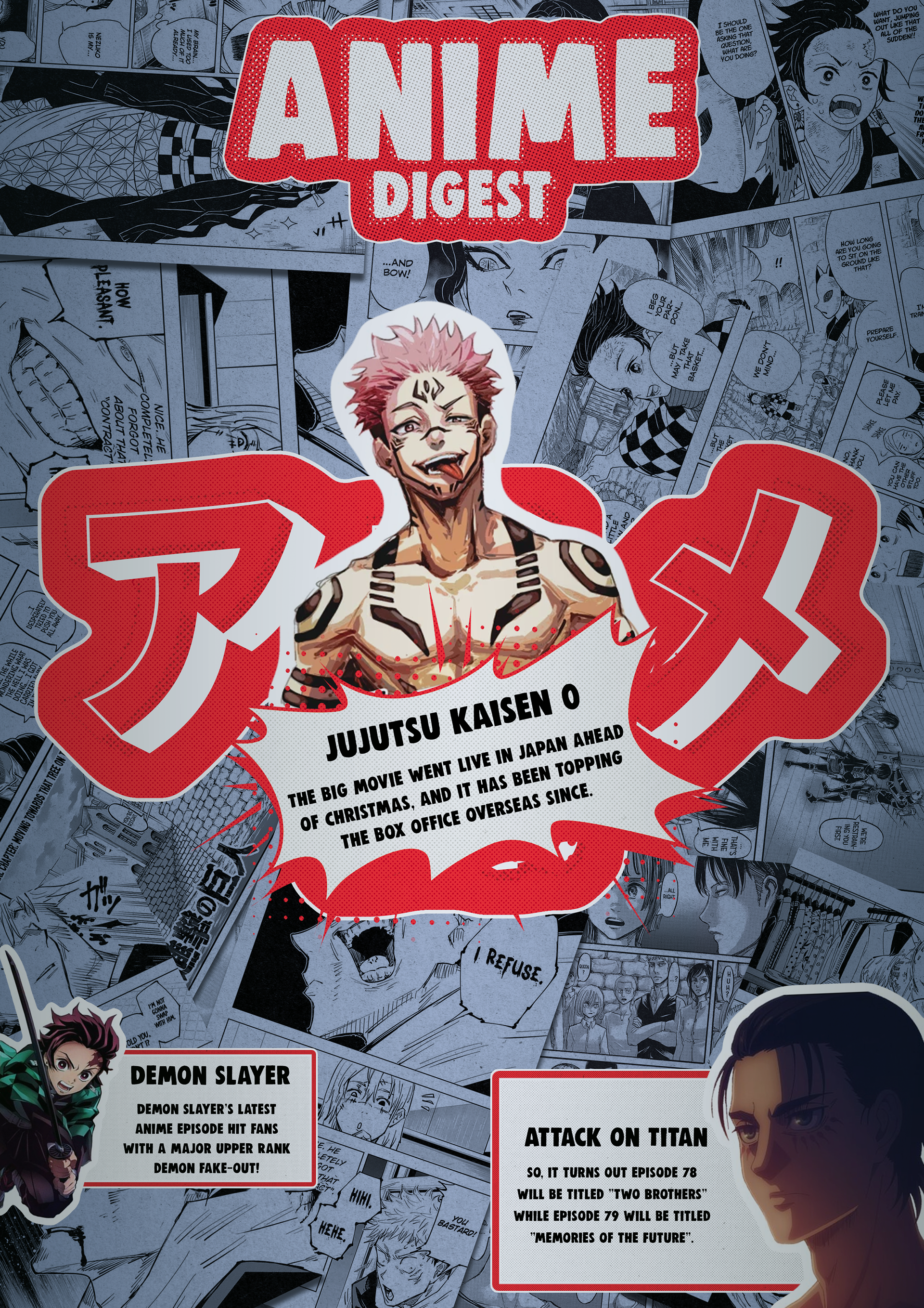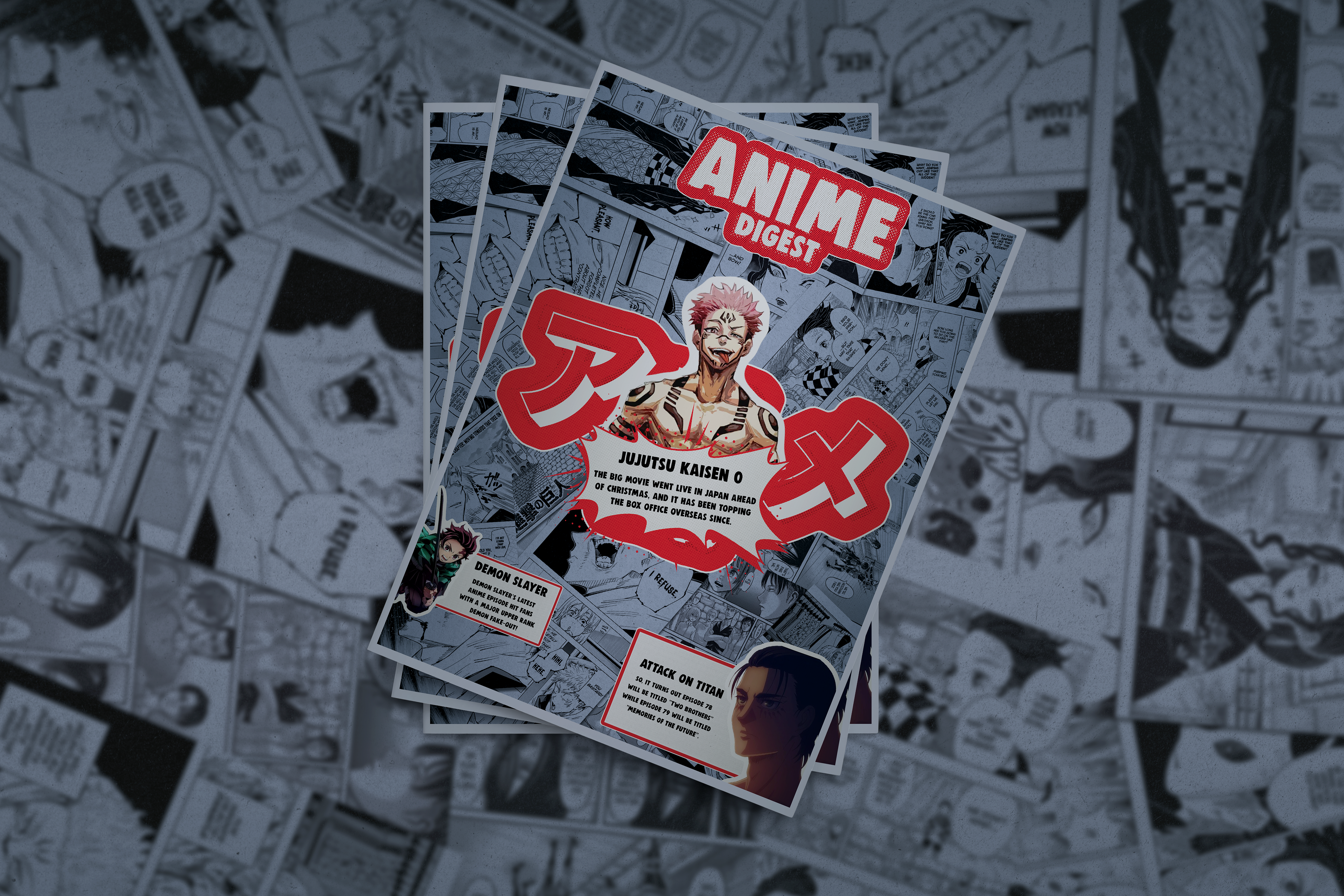 Made as a concept for a Anime Digest Magazine that is produced weekly for manga and anime fans who really love to follow the culture.