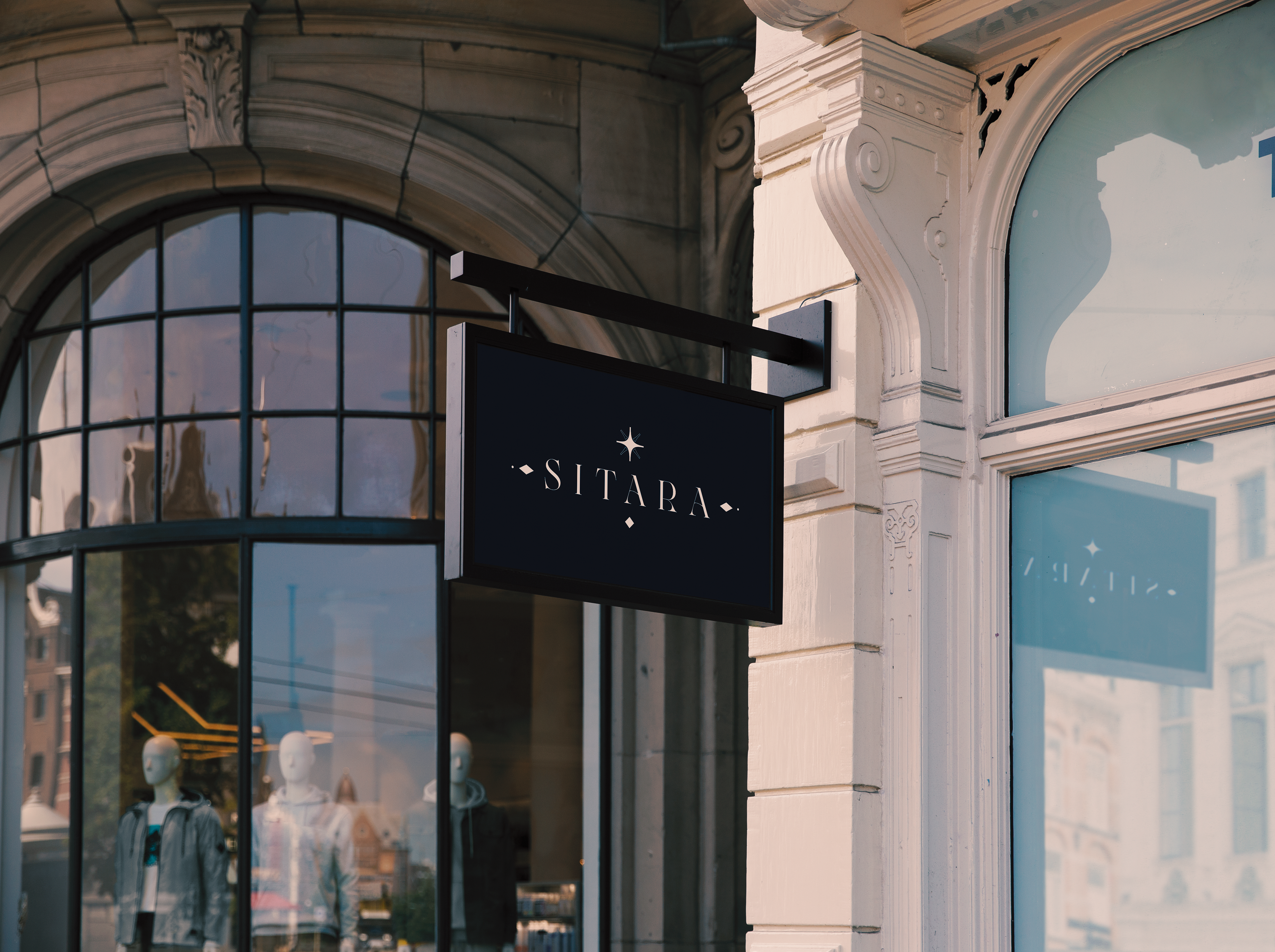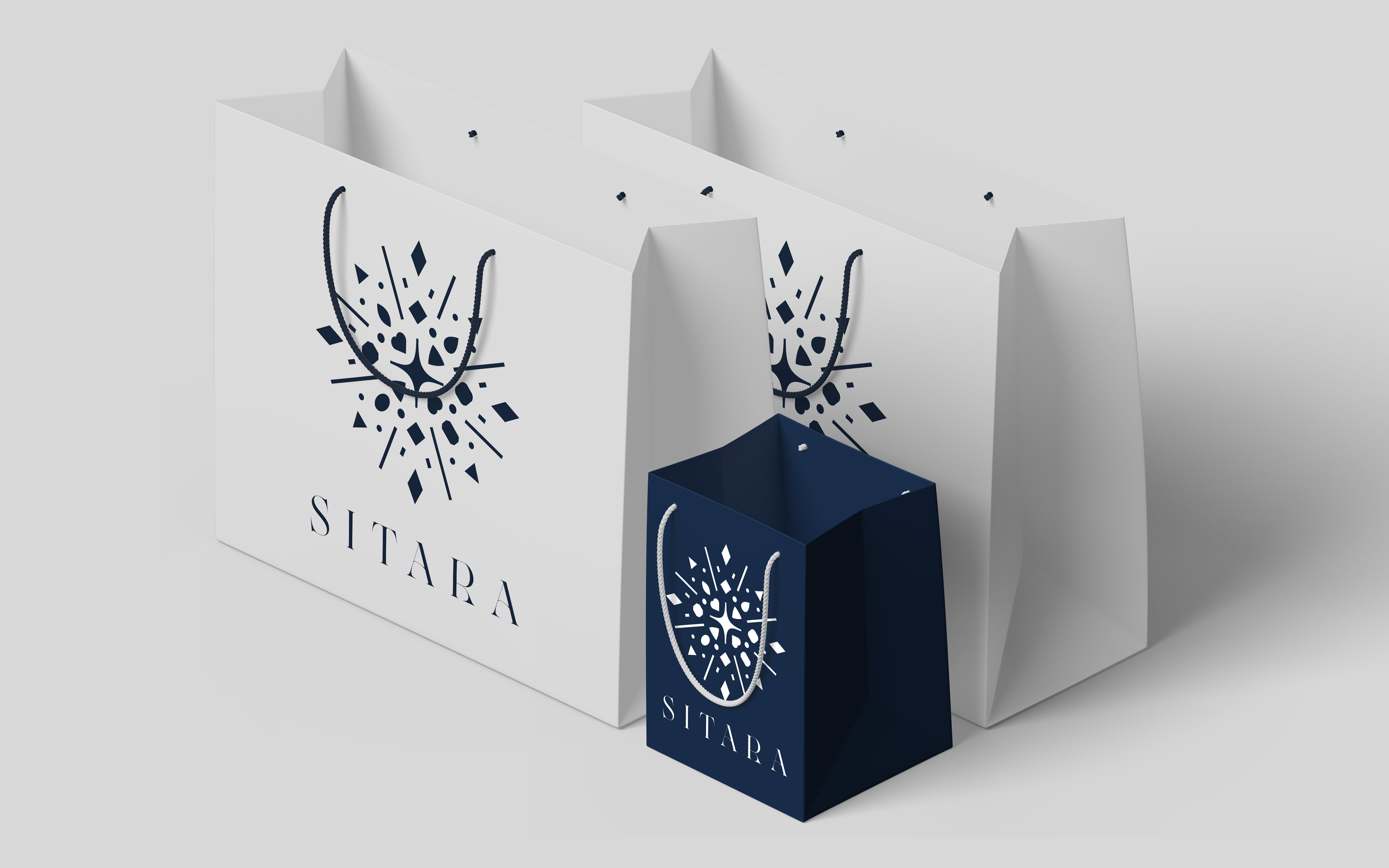Logomark consists main element Star ( Sitara ) in the middle and "Sitare" plural of "Sitara" is more commonly used for sparkles and small mirrors put on indian ethnic clothing and apparel that come in different shapes and sizes, the whole logomark is in a shape of a mandala a Indian form of geometric art which is also similar to islamic geometric designs.