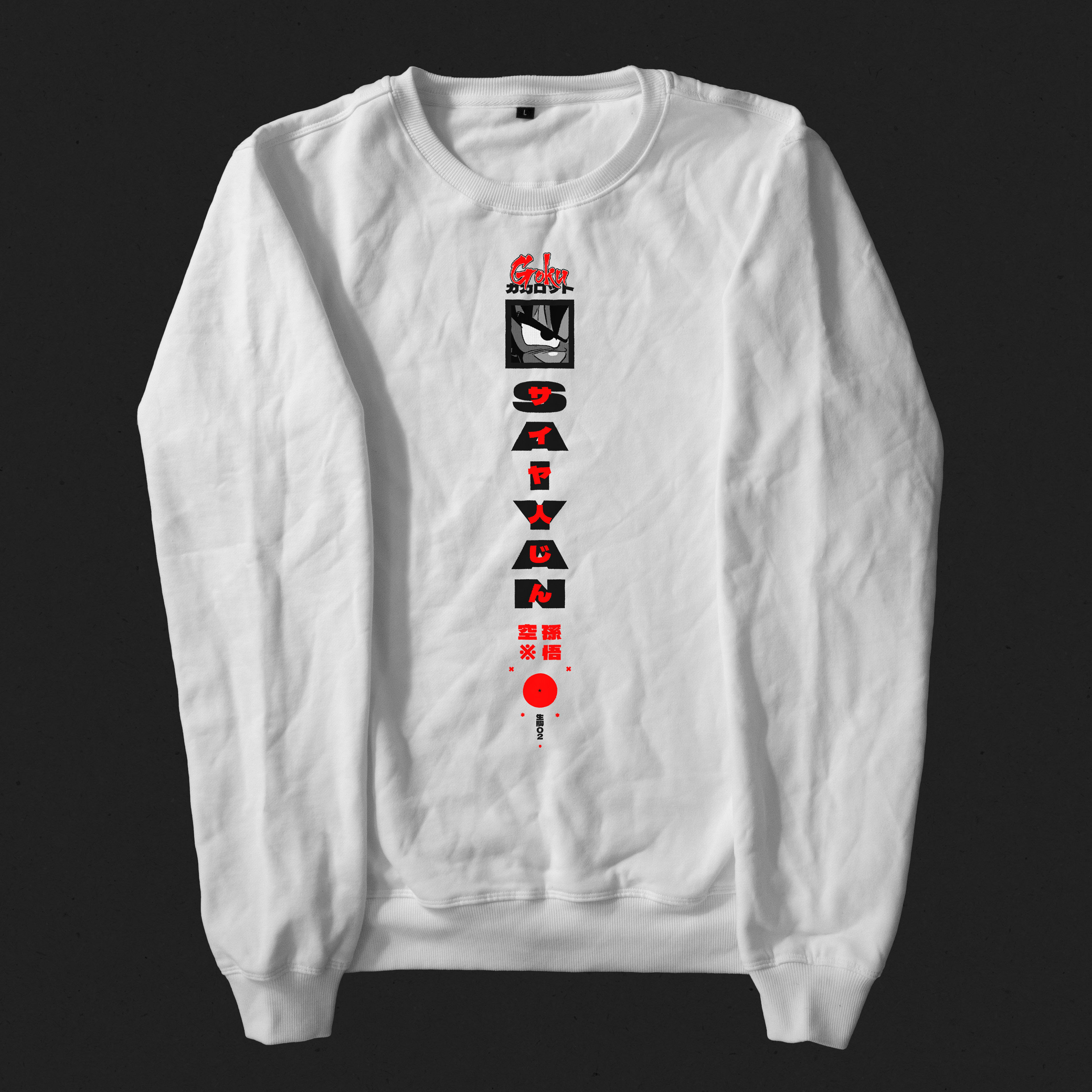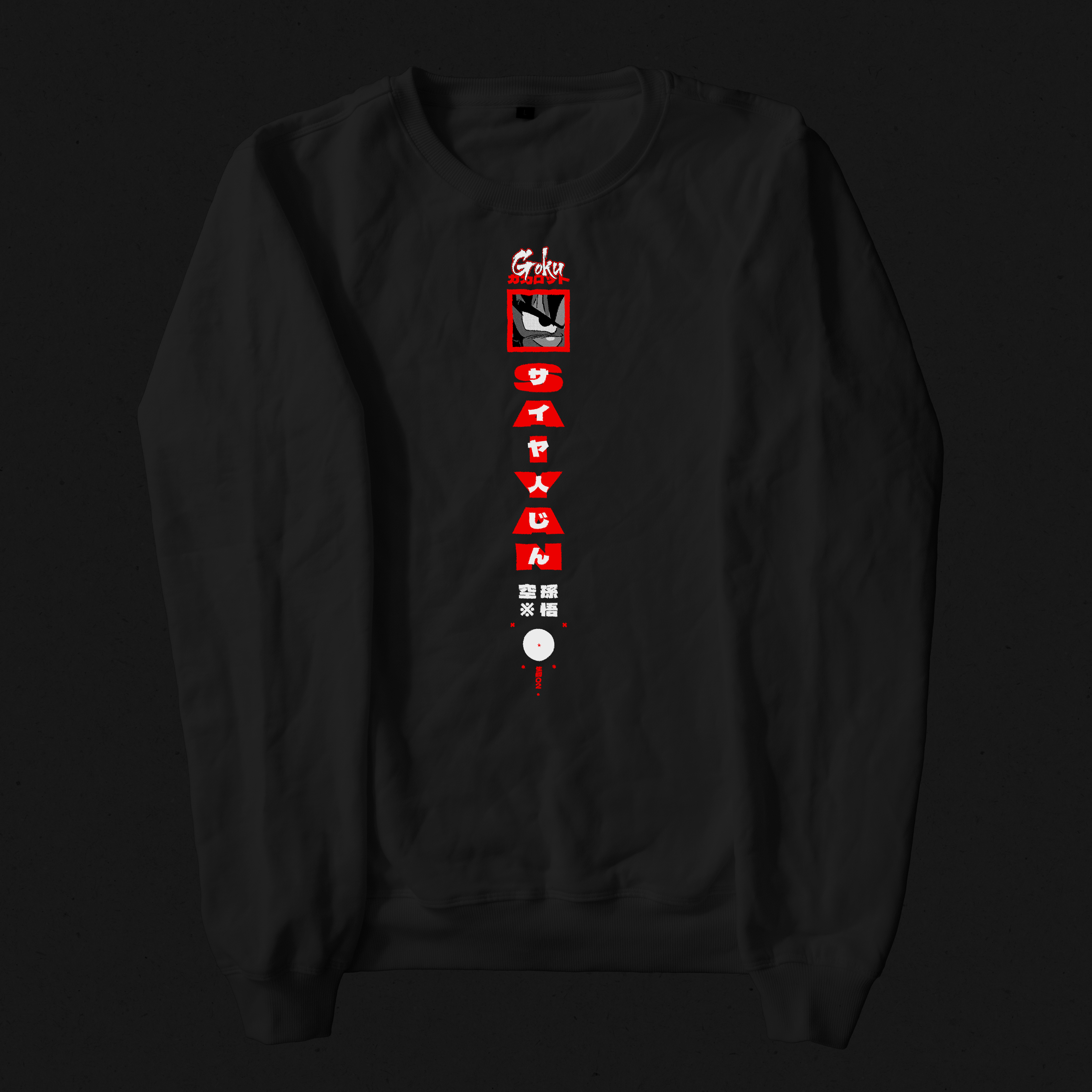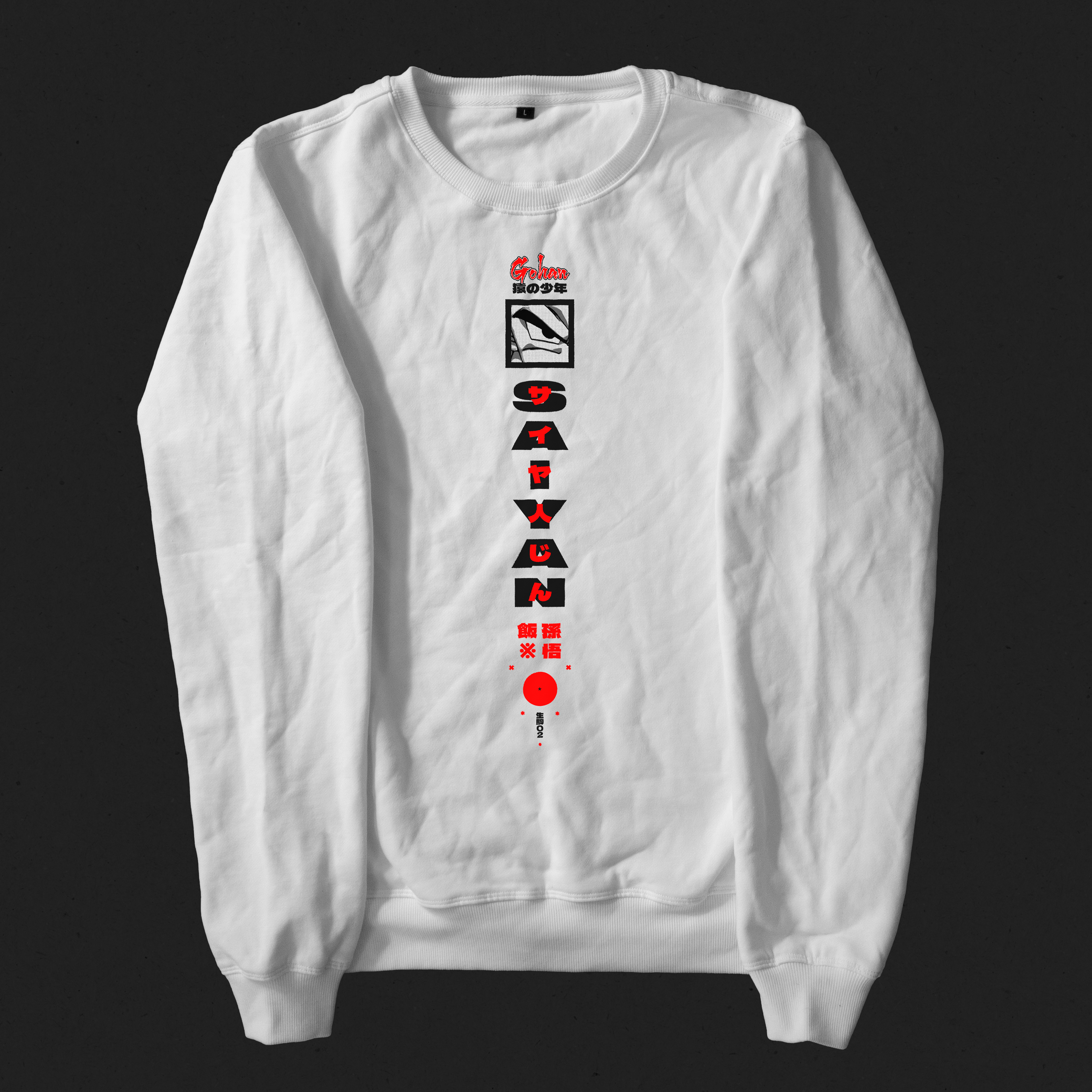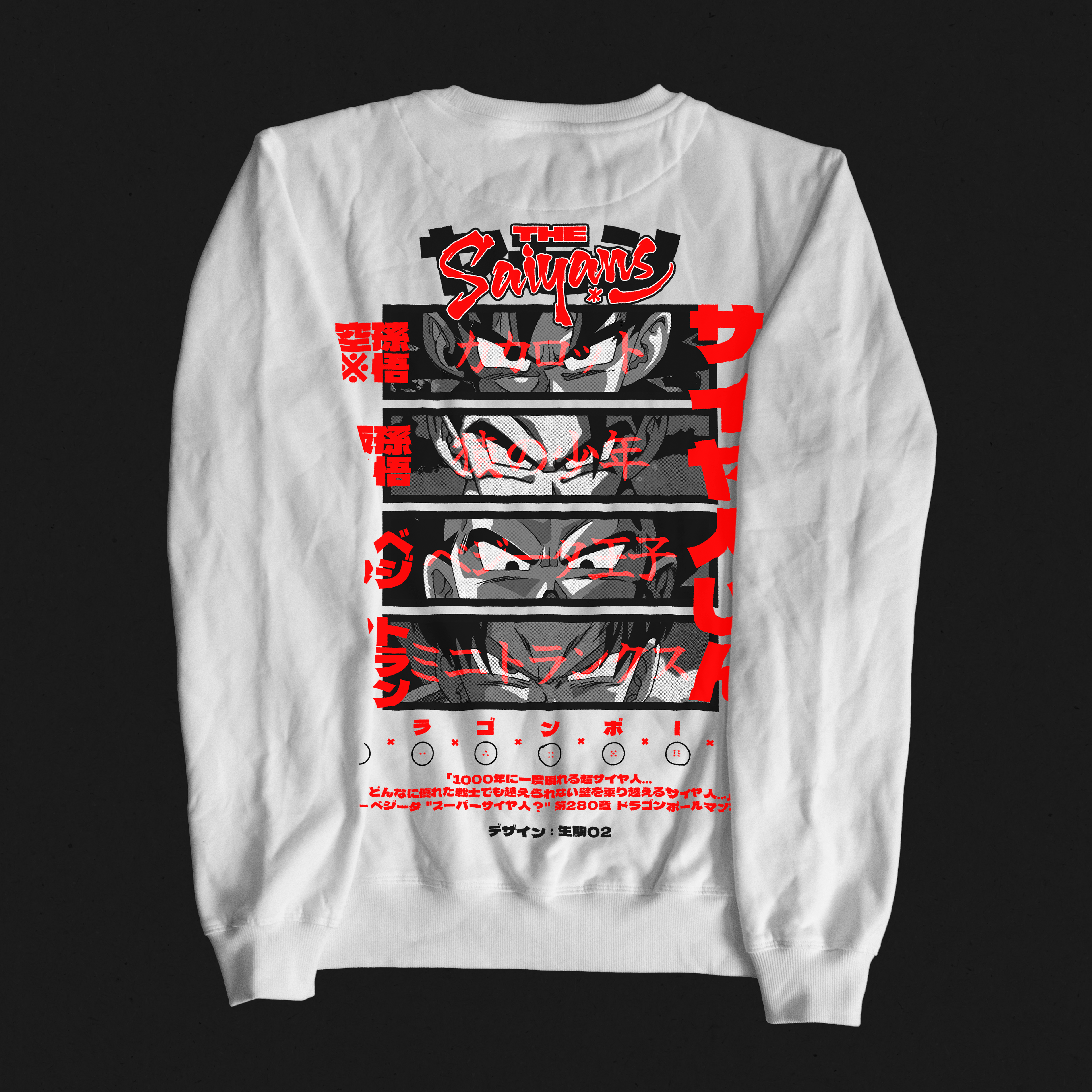 This poster and merchandise design was made for four of the saiyans: Goku, Gohan, Vegeta, and Trunks. The design is monochromatic with a red accent color. Two versions were made, one for a white background and one for a black background.