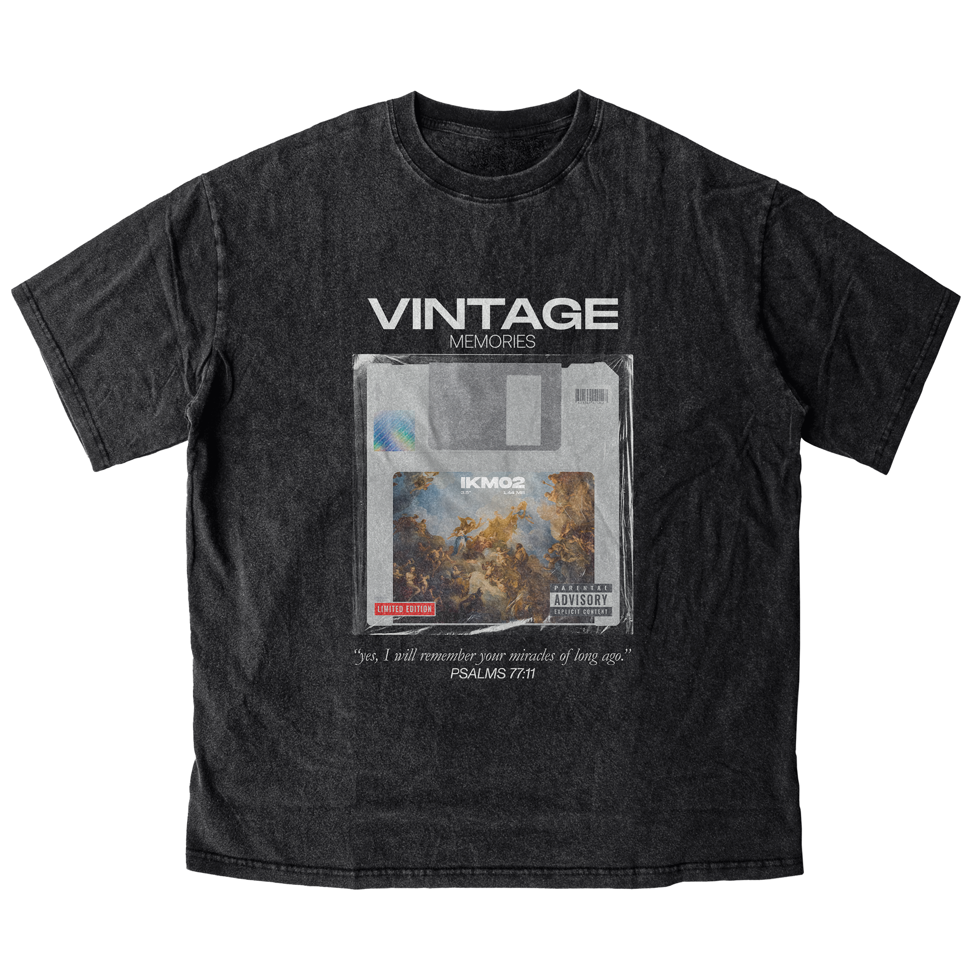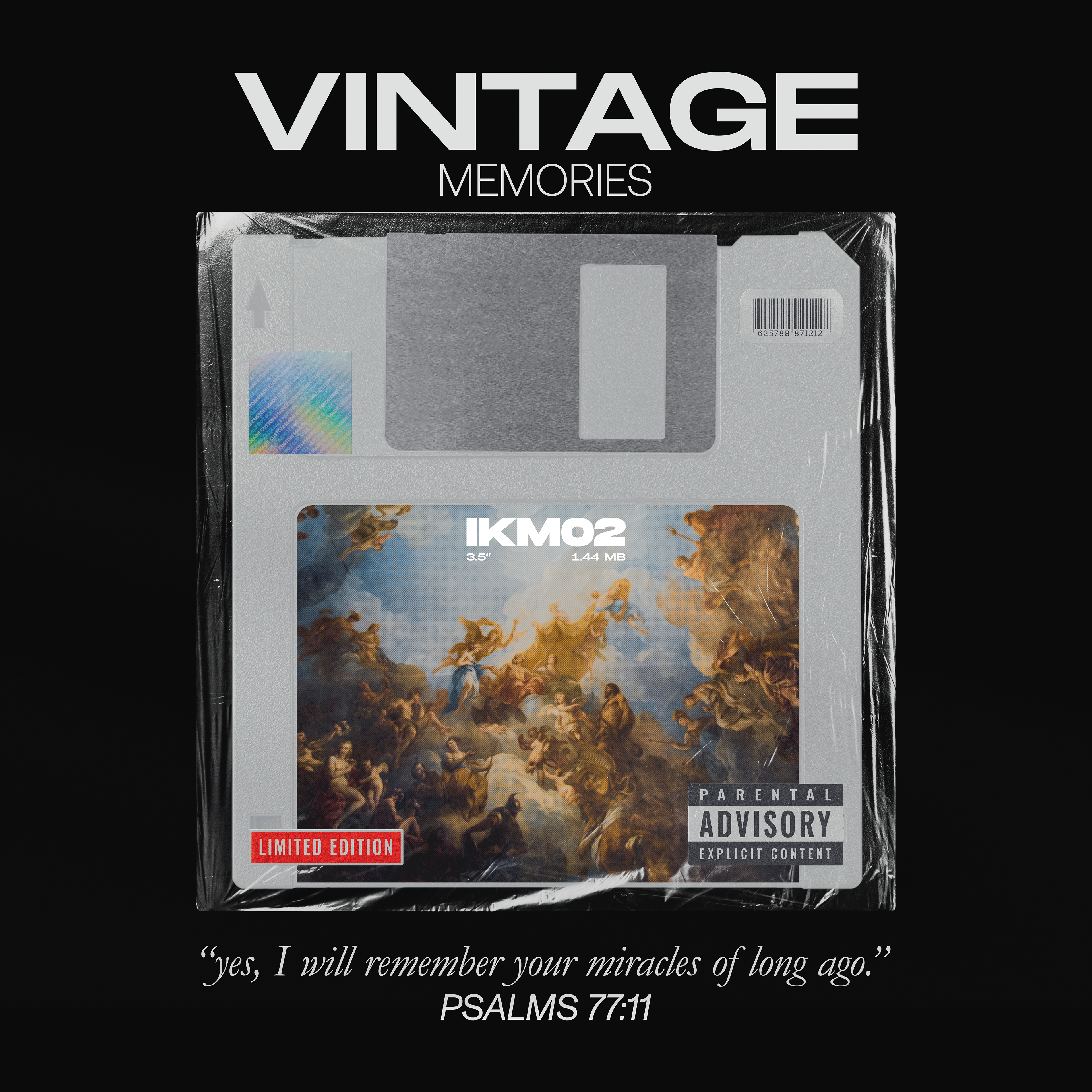 This image was created using photographs of a real Renaissance-Era painting. The floppy disk is a symbol of memories. The image is layered with halftone effects and made to look like a real label.